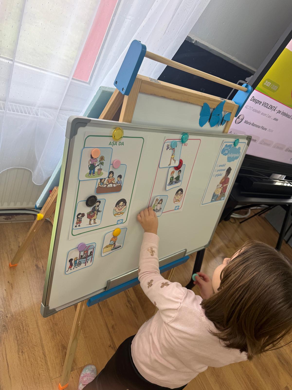 Pentru consolidarea cunoștințelor, am realizat jocul didactic „Așa da! / Așa nu!”, prin care copiii au exersat recunoașterea și diferențierea comportametelor pozitive de cele negative, fixând noțiunile discutate anterior într-o manieră atractivă.